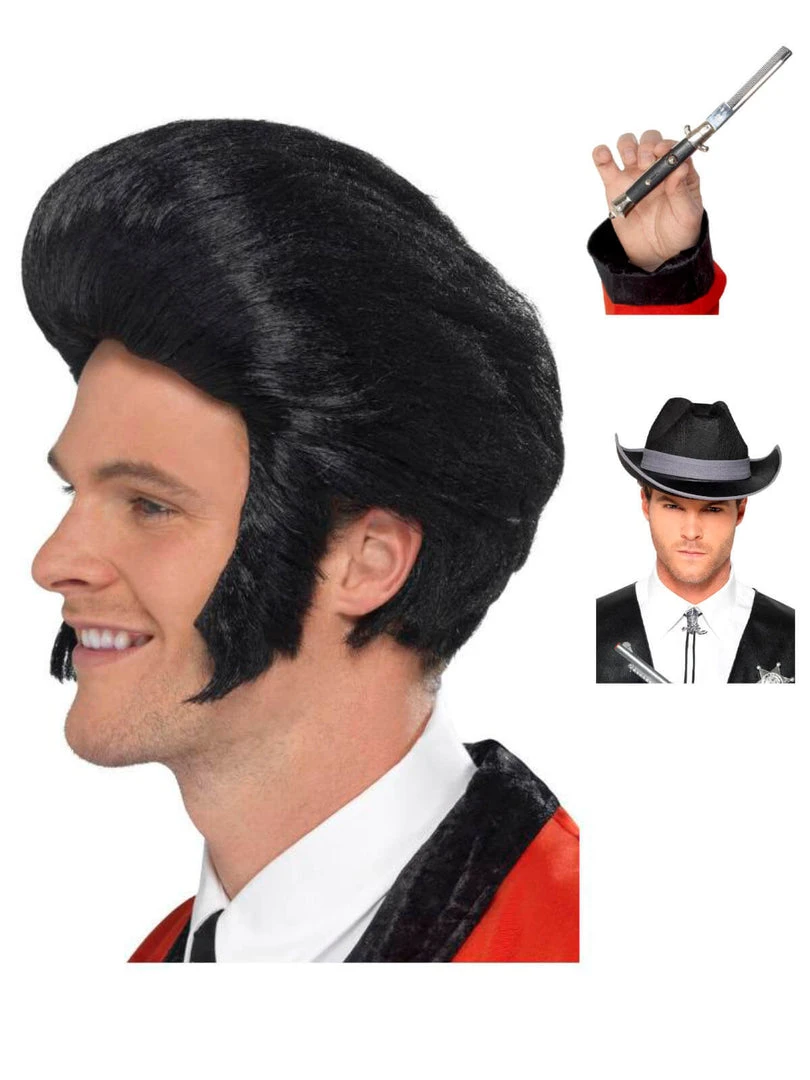 My quiff’s bigger then your quiff! Have the biggest quiff at the party wearing one only the King himself would! 1950’s style King wig.