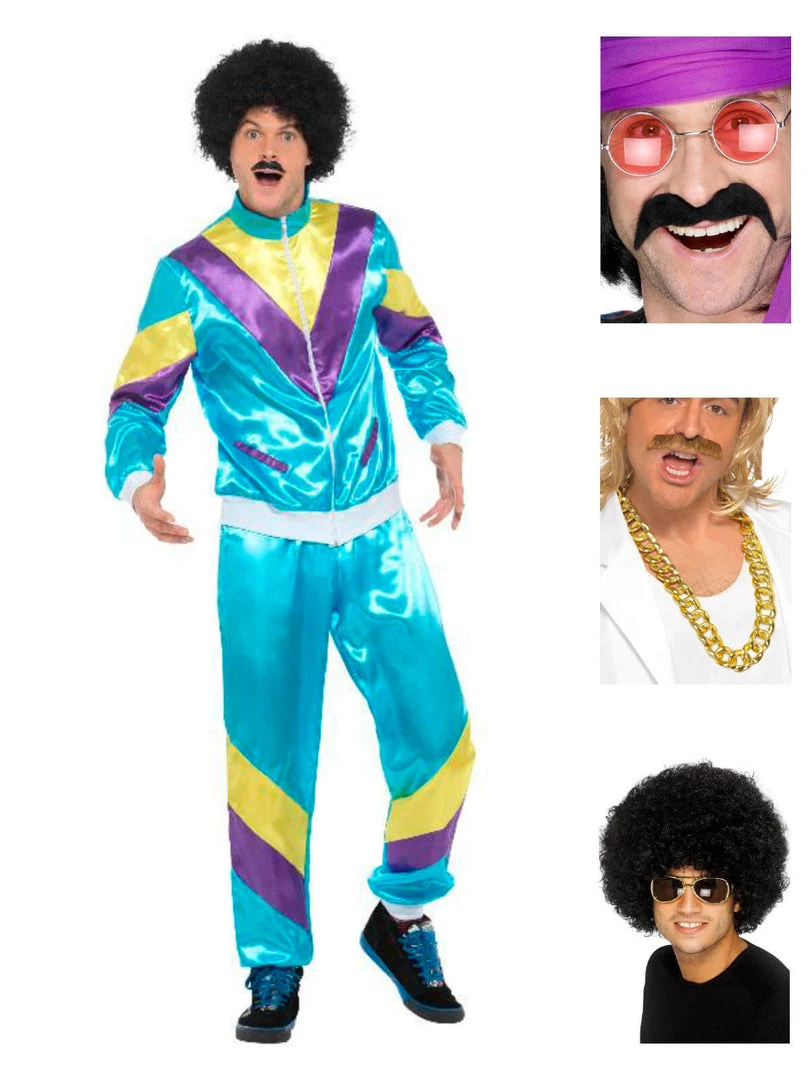 Shiny tracksuits were all the rage back in the 80’s. Now you can turn back time in this scouser shiny shell suit costume. Blue with jacket and trousers. ARR AY !