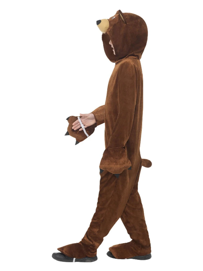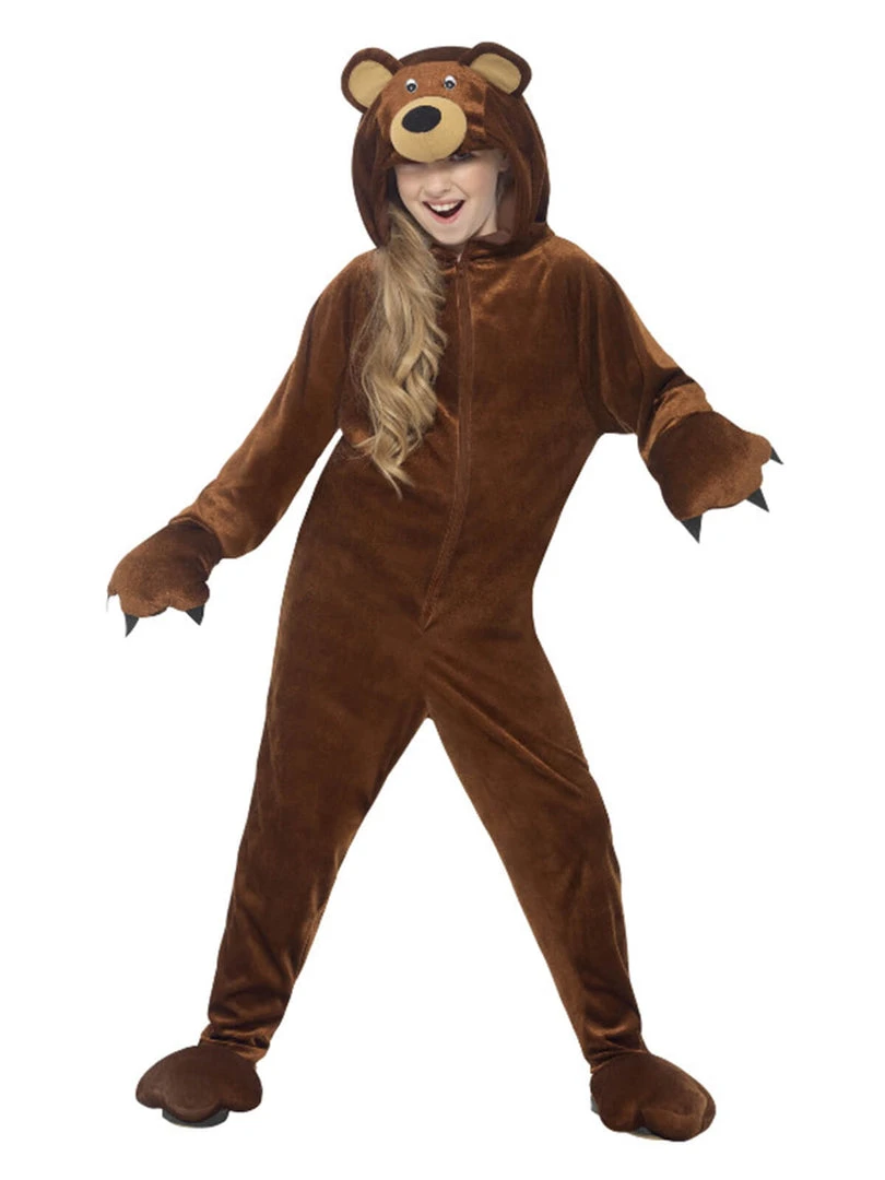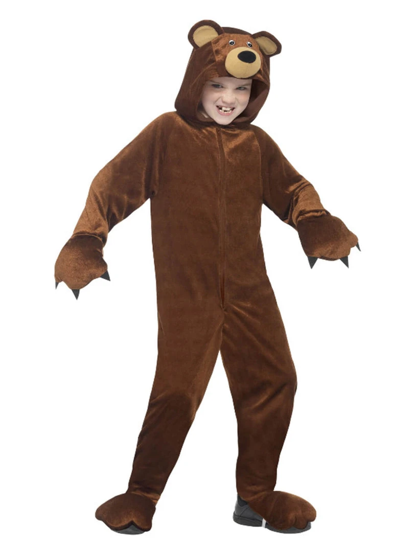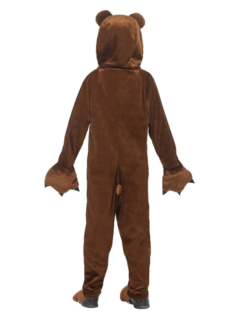 Get grizzly in this bear costume. Onesie style with clawed hands and tail attached.