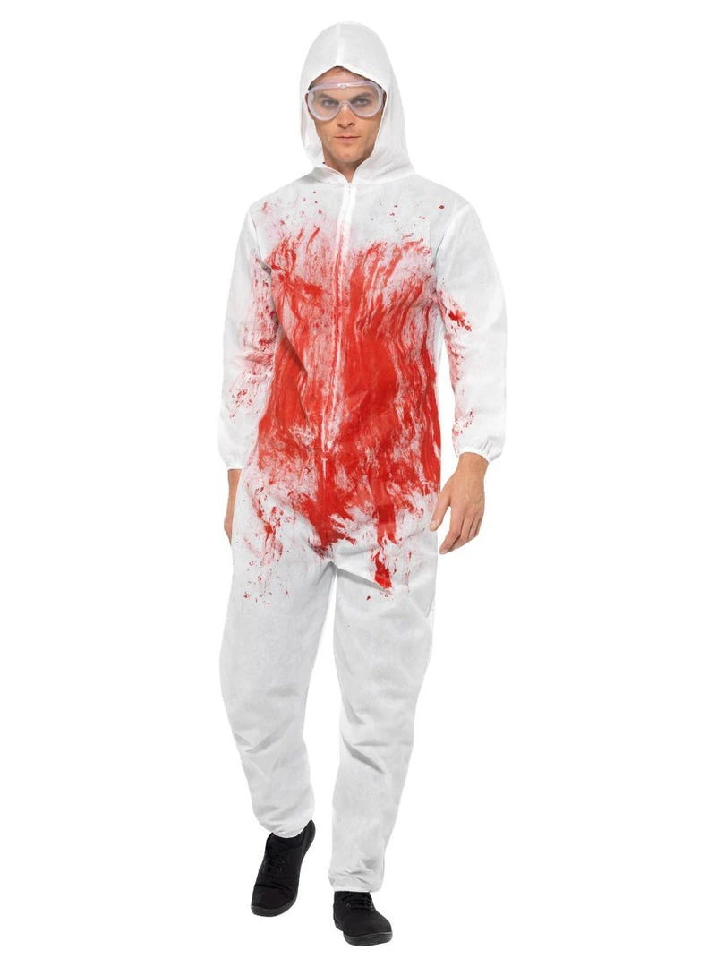 Are you looking for a gory Halloween outfit? This forensic investigation suit is the perfect Mens Bloody Costume. The protective boiler suit ensures you’re ready to examine the scene and bag the evidence. Pair this Mens Bloody Costume in red with a camera around the neck, and you’ll look like you’ve come back from a messy murder scene.
