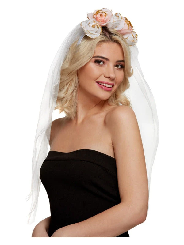 Celebrate the hen in your life by giving her this gorgeous floral headband with attached veil. A lovely accessory for a bride to be.