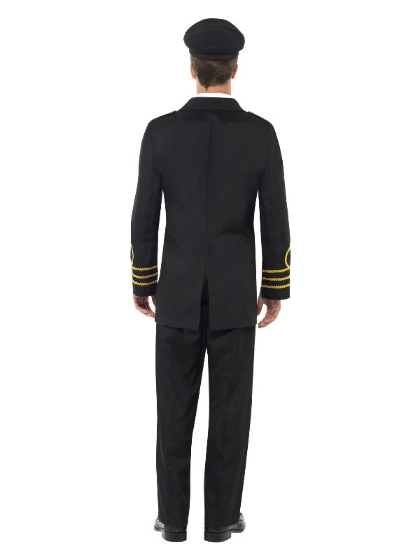 In the Navy! There’s nothing like a man in uniform. Wear this navy officer costume in style. Comes with Black jacket, trousers, mock shirt and hat.