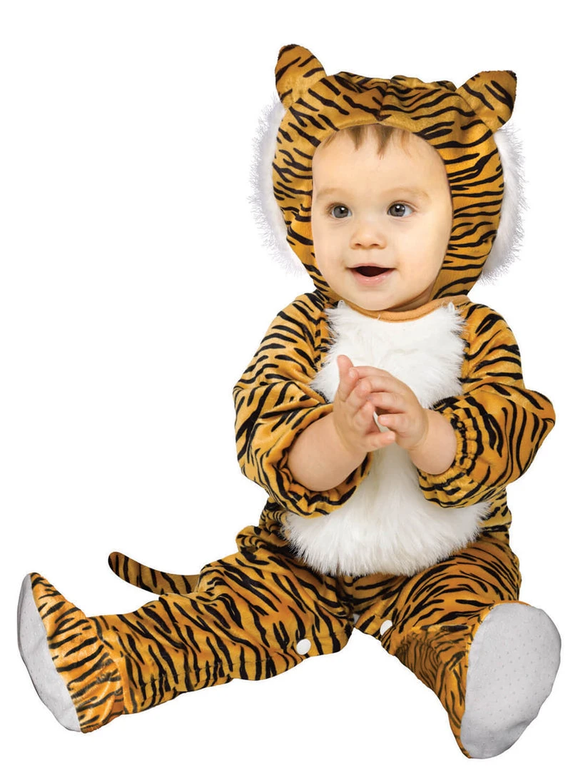 Little ones will have a roaring good time in this cuddly tiger costume. Be warned, cuteness overload! Perfect for photoshoots, Halloween & everyday dress-up!
