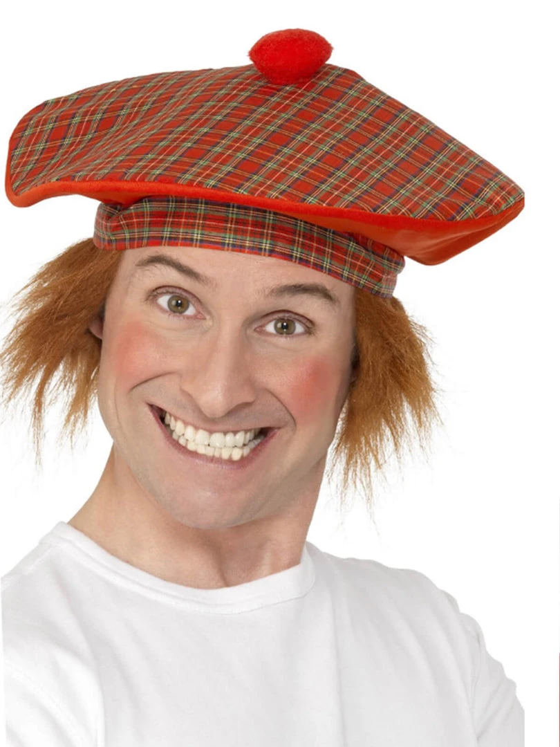 The perfect Scottish accessory this tartan cap comes with fluffy red hair attached. Now where’s the haggis?