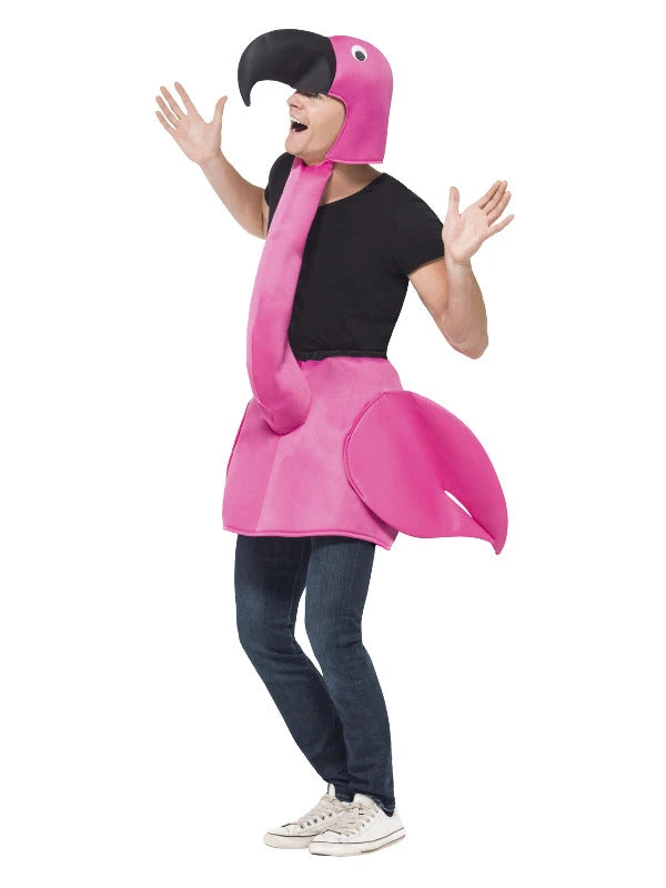 Flamingle the night away in this bright pink flamingo costume! Included is a one piece padded body with attached neck and hood. You’ll look Flamazing at your next party. A great man’s costume for stag or festival.