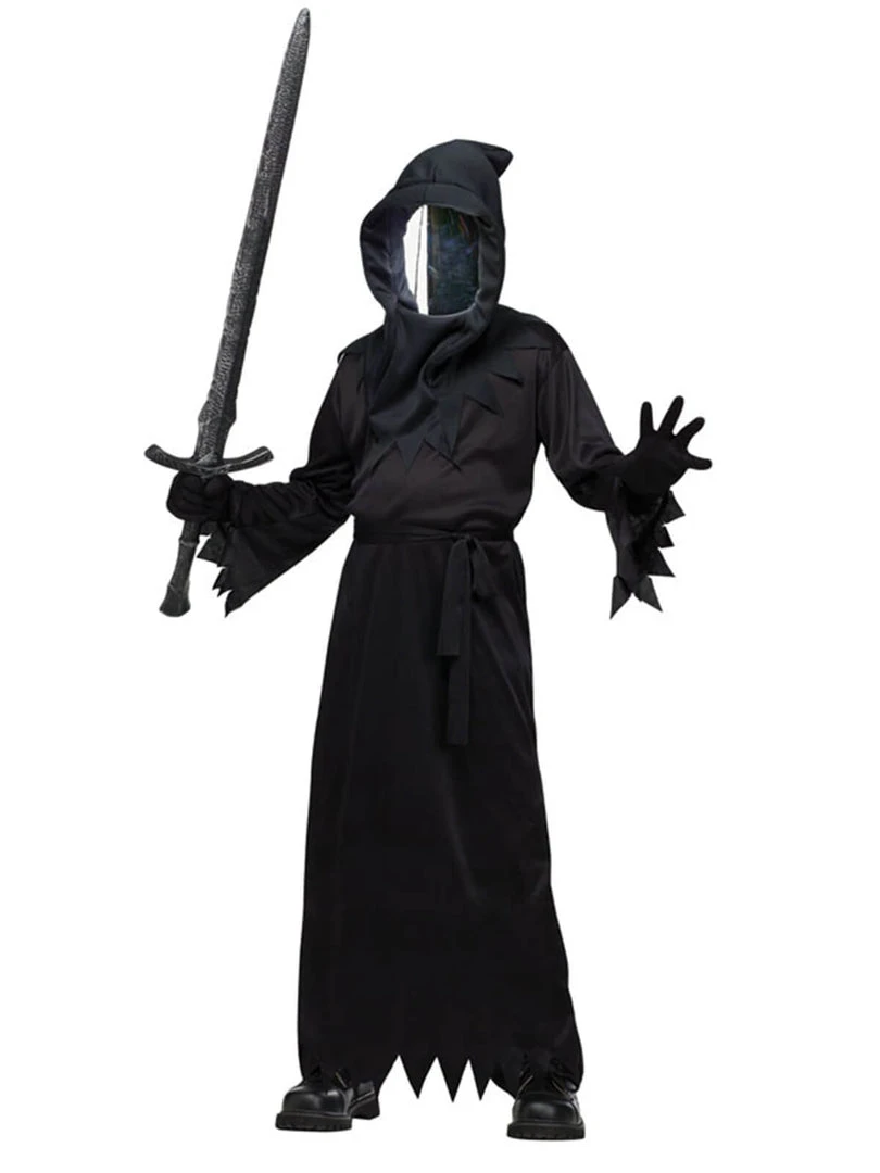 Make people SCREAM in this Haunted Mirror Ghoul fancy dress costume. Costume includes Robe, Hood with cowl and reflective mirror mask, Belt, and gloves.