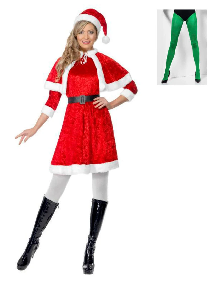 Be the jolliest Miss Santa Clause in this cute red santa costume. Complete with dress, cape, hat and belt.