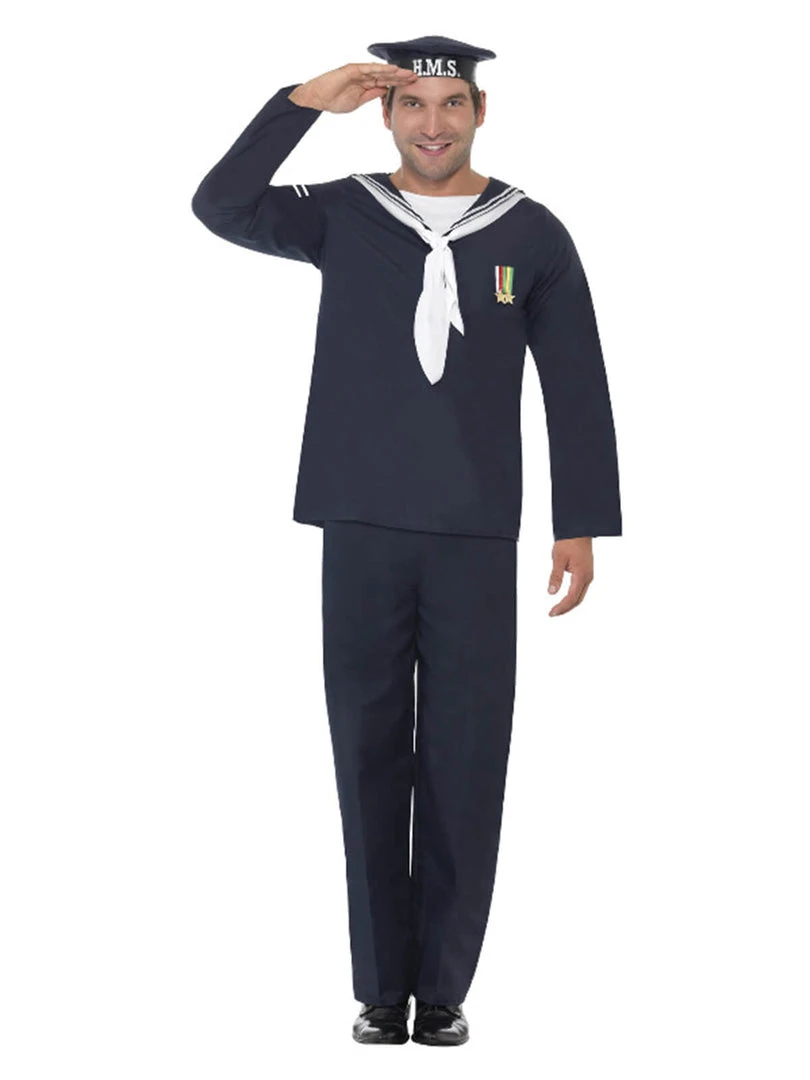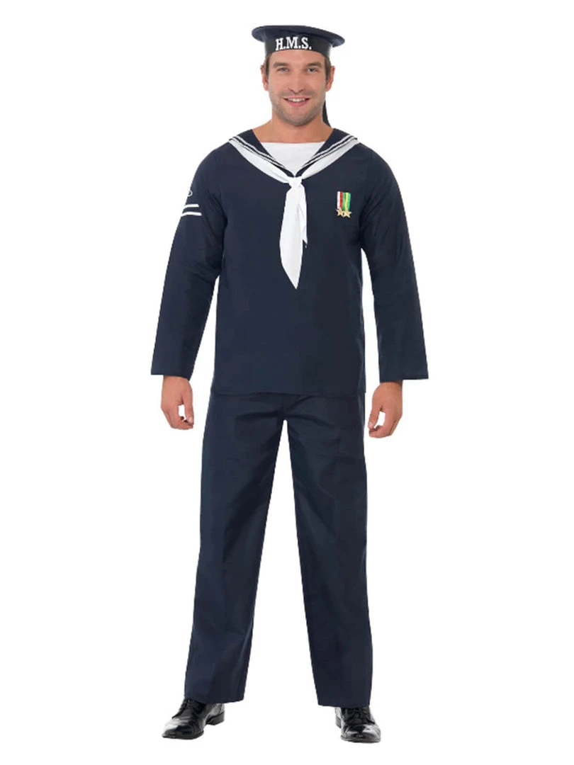 Sail the seas in this Naval seaman costume. Includes hat, top and trousers.