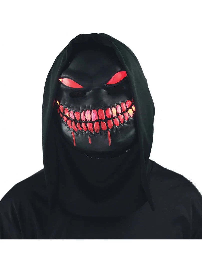 This terrifying Nightstalker Mask is made of a Hooded vacuform with LED lights. lights have a Pulsing and flickering Light Up Feature making it great for Festivals, Raves, Halloween, or any Night-Time Craic! 3 x AAA batteries included.