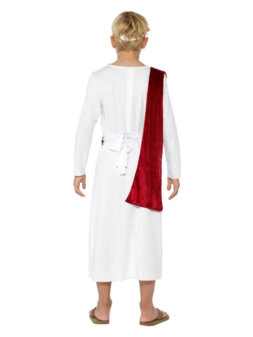 Train for battle in this Roman warrior costume. Costume comes complete with dress and attached cape, armcuffs and headband. Accessorise with a sword and some gladiator sandals.
