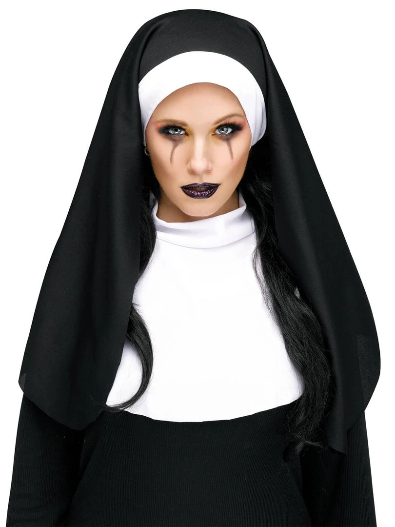 This Nun’s habit comes complete with a headpiece and collar. It is perfect to wear over any black dress. Complete the look with a cross pendant!