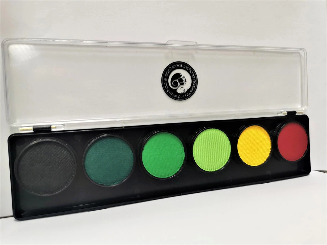 6 Cameleon water based face paints in a palette.